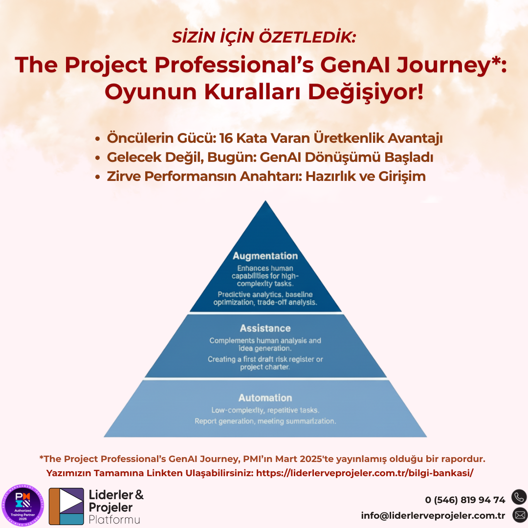 Raporun genel mesajı net: Yapay zekâ bir gelecek öngörüsü olmaktan çıkmış durumda; bugün projelerin, ekiplerin ve sektörlerin işleyişini dönüştürüyor. Proje profesyonelleri için bu dönem, yalnızca uyum sağlama değil, dönüşüme liderlik etme fırsatını da beraberinde getiriyor.