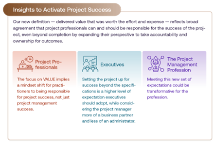 PMI raporunda, proje yöneticilerinin başarıya ulaşmaları için şu kritik adımları atmaları gerektiği vurgulanıyor: Paydaş Algısını Yönetmek: Başarı, yalnızca somut çıktılarla değil, paydaşların projeyi nasıl algıladığıyla da doğrudan ilişkilidir. Proje Yönetiminin Ötesine Geçmek: Proje yöneticileri, yalnızca süreçleri yürütmekle kalmamalı, aynı zamanda stratejik hedeflere katkı sağlamaya da odaklanmalıdır. Sürekli Değerlendirme ve Adaptasyon: Proje sürecinde değişen koşullara hızlı uyum sağlamak, başarının anahtarıdır. Daha Geniş Bir Perspektif Benimsemek: Projelerin yalnızca teknik ve operasyonel çıktıları değil, kurumsal, ekonomik ve toplumsal etkileri de değerlendirilmelidir.