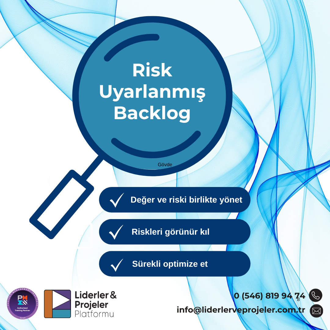 Project Management Institute (PMI®) standartlarını referans alan eğitim yaklaşımlarına göre çevik ekiplerin riskleri erken fark edebilmesi, proaktif önlemler geliştirebilmesi ve riskleri sürekli izleyebilmesi kritik bir yetkinliktir. Risk uyarlanmış backlog yaklaşımı, risklere yönelik aksiyonların ayrı bir yerde tutulması yerine doğrudan backlog içerisinde görünür ve öncelikli hale getirilmesini sağlar.